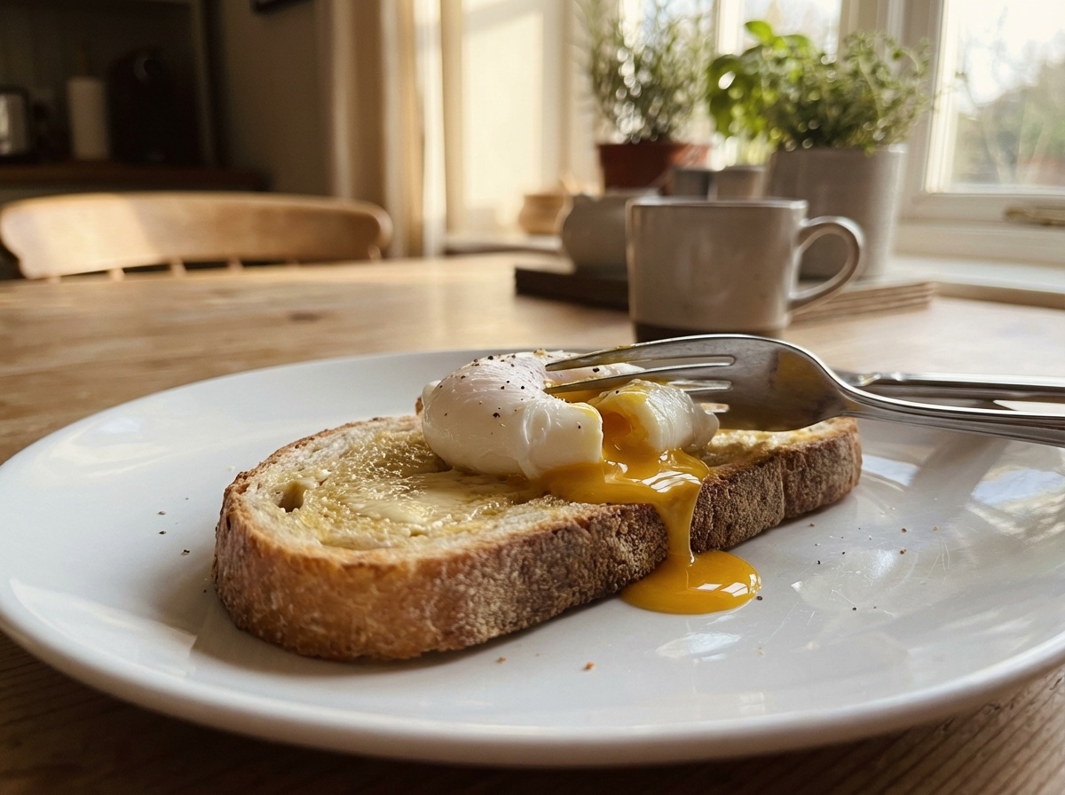 노른자는 촉촉하고 흰자는 완벽하게 익어요.