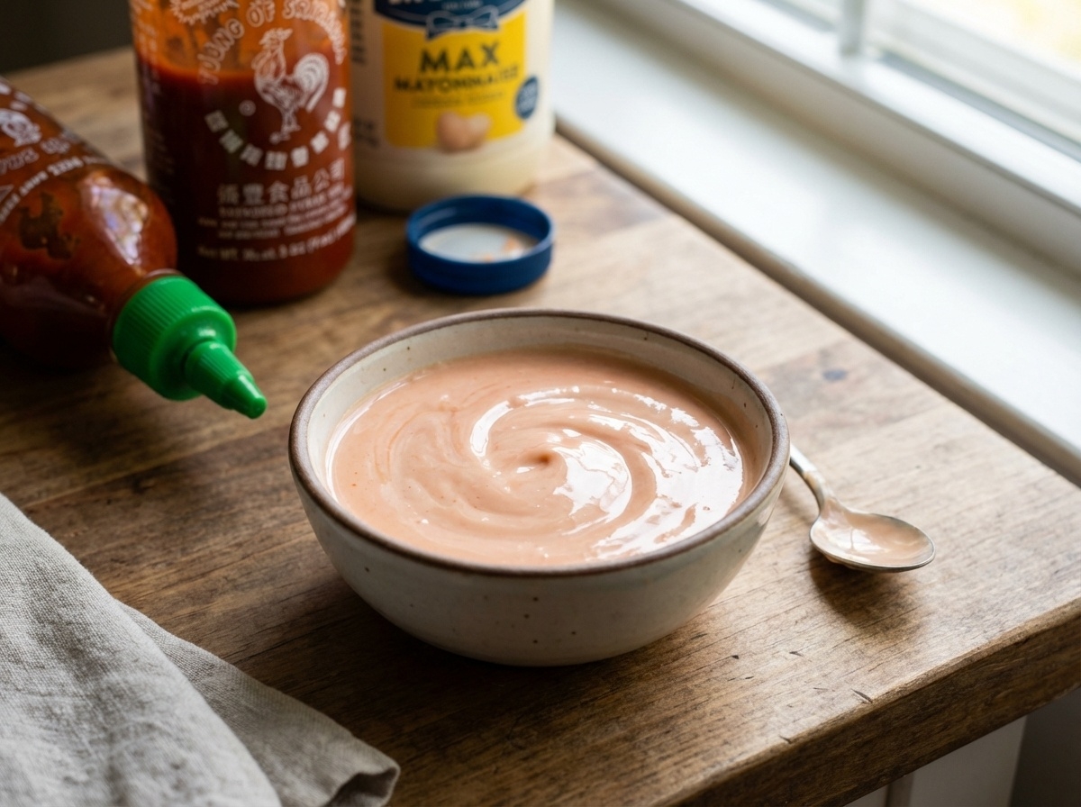 작은 볼에 연유, 마요네즈, 스리라차 소스를